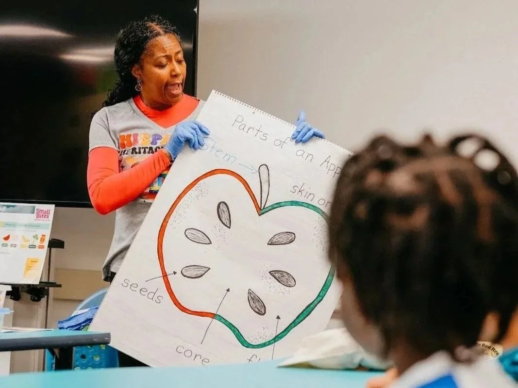 For Ms. Latonya, one moment stands out: During a tasting activity, a student discovered he liked red apples after trying different varieties at school. At pickup, his parent shared her surprise – she thought he didn’t like apples at all. The student was able to clearly explain why: “I like red apples because they are sweet.” That kind of language development is exactly what literacy growth looks like.